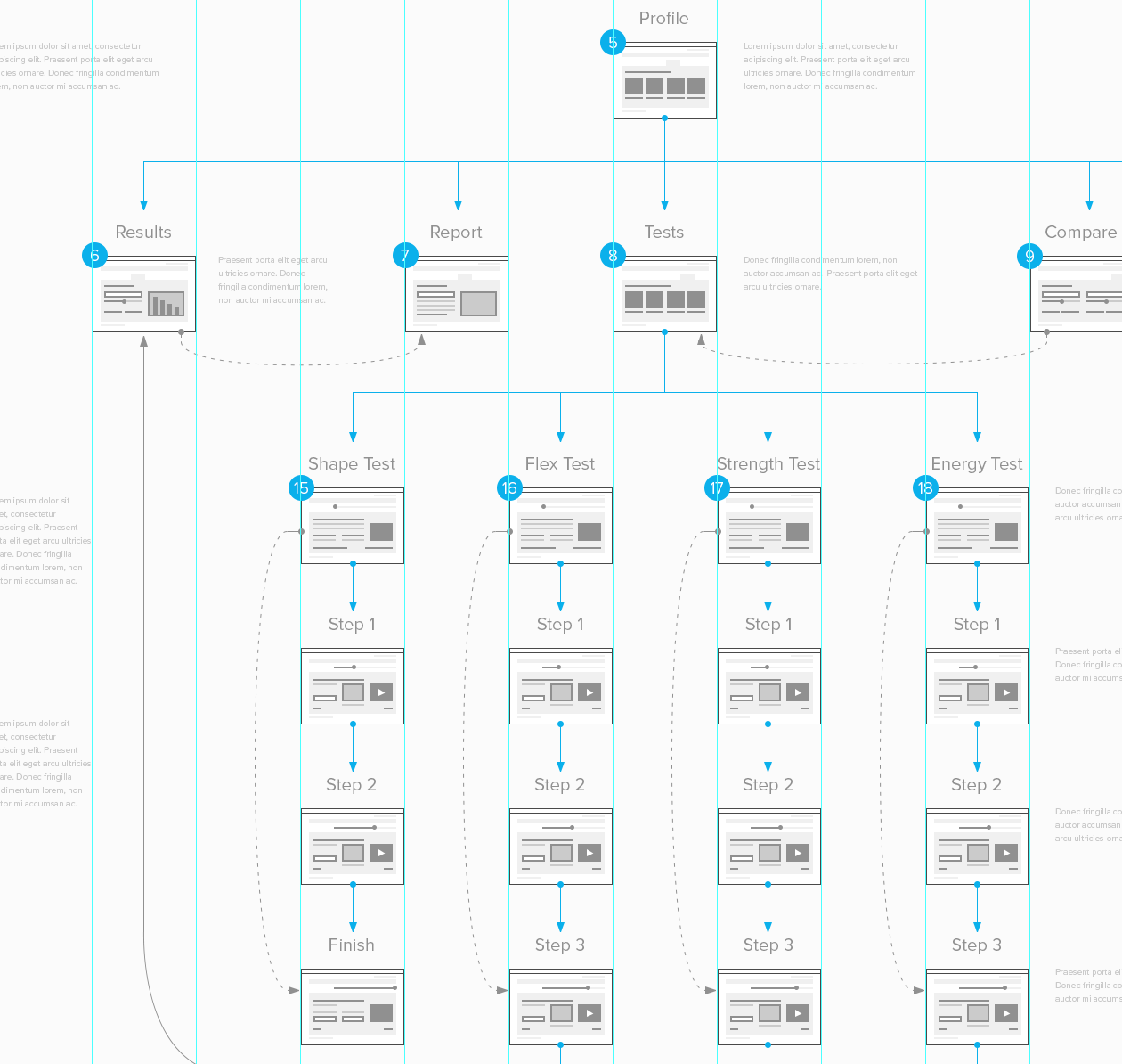 Throughout the design process I kept development on track with wireframes to ensure that the flow of each test and user’s progress through the site itself was correct.